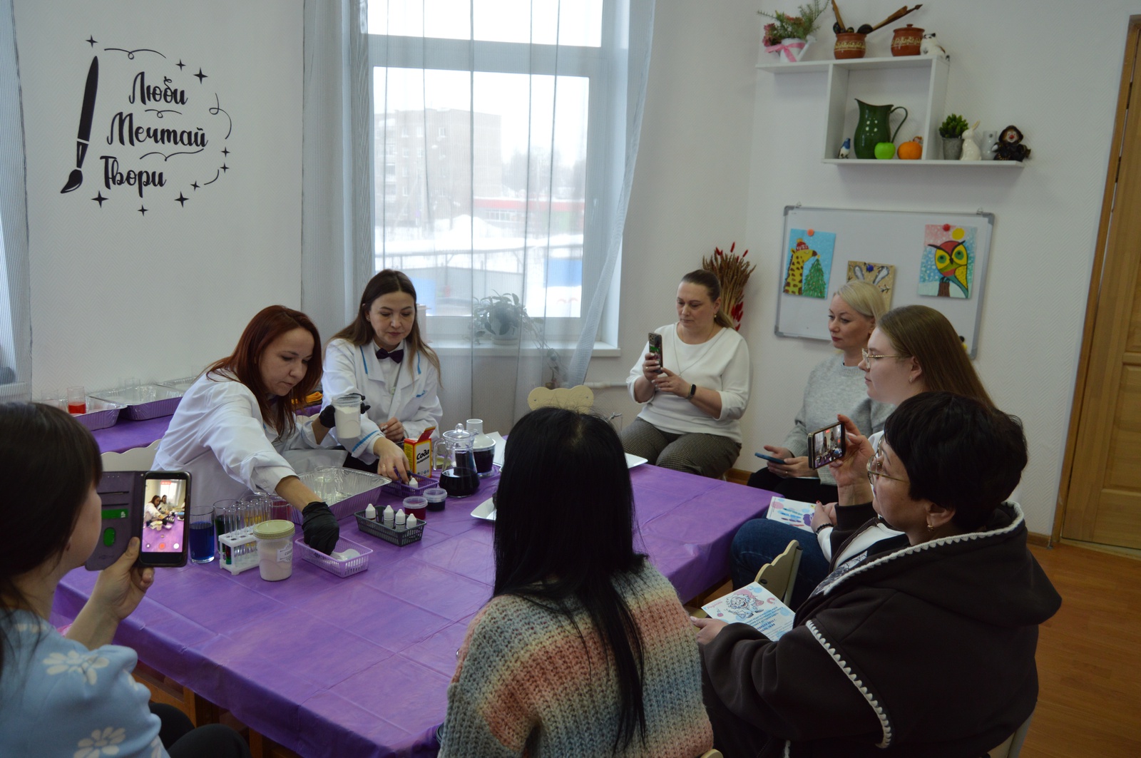 Фиолетовый цвет — это гармония всего живого, Семушина Татьяна Олеговна, руководитель изостудии, провела опыт по созданию цвета из природных и растений.