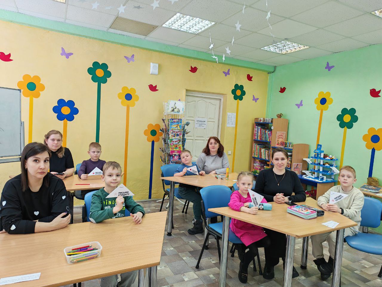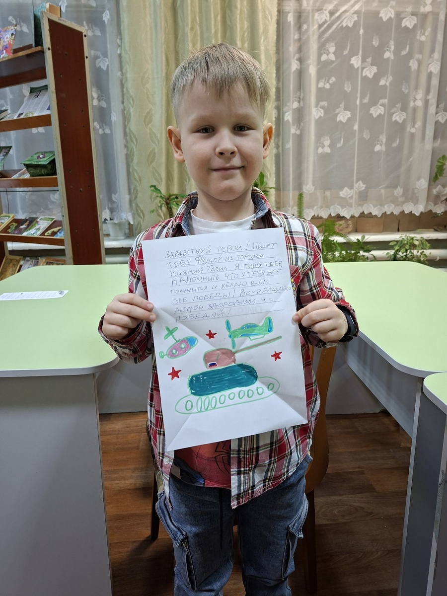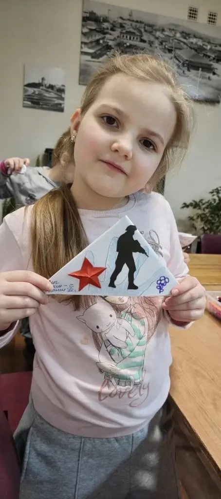 В библиотеке их ждал интересный разговор о прочитанном произведении, просмотр фрагмента мультфильма «Василёк» и задание к нему, обзор литературной выставки, специально подготовленной для дошкольников и их семей по данной теме, мастер-класс по складыванию письма-уголка. Участники мероприятий написали письма солдатам в места проведения специальной военной операции, дошкольники дополнили их яркими детскими рисунками. Также научились правильно и аккуратно складывать письмо уголком, узнав название каждого из них.