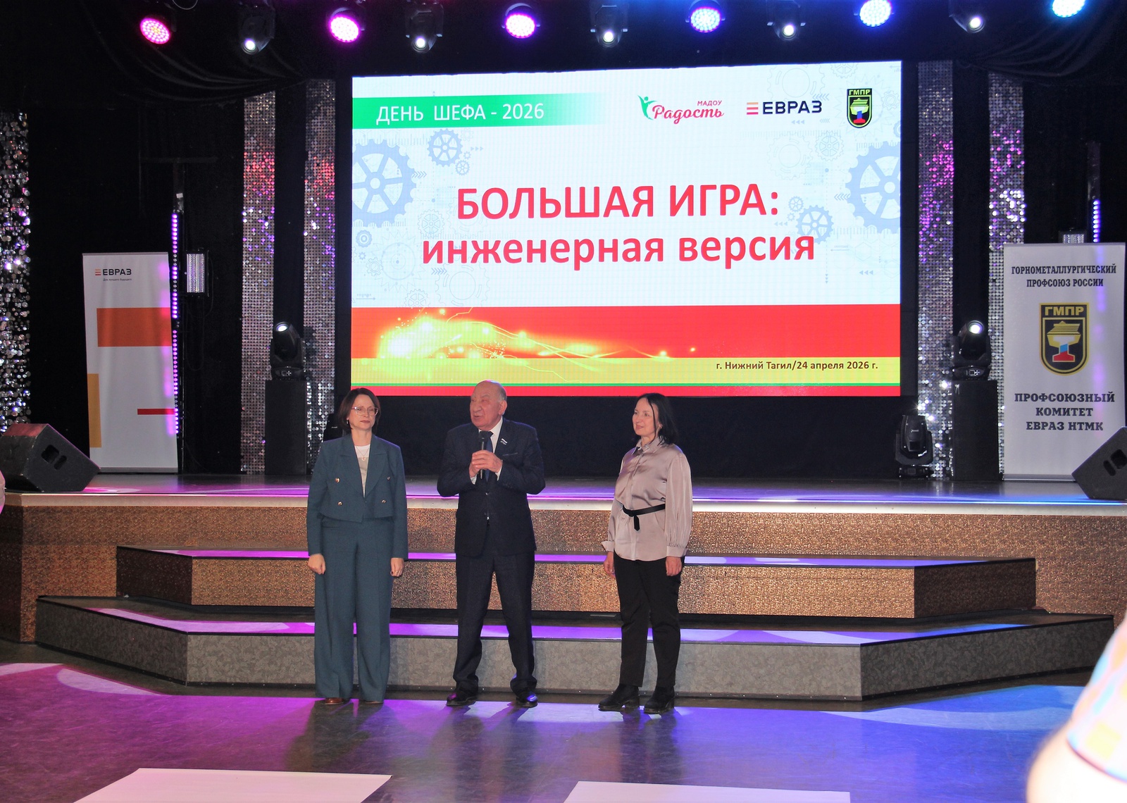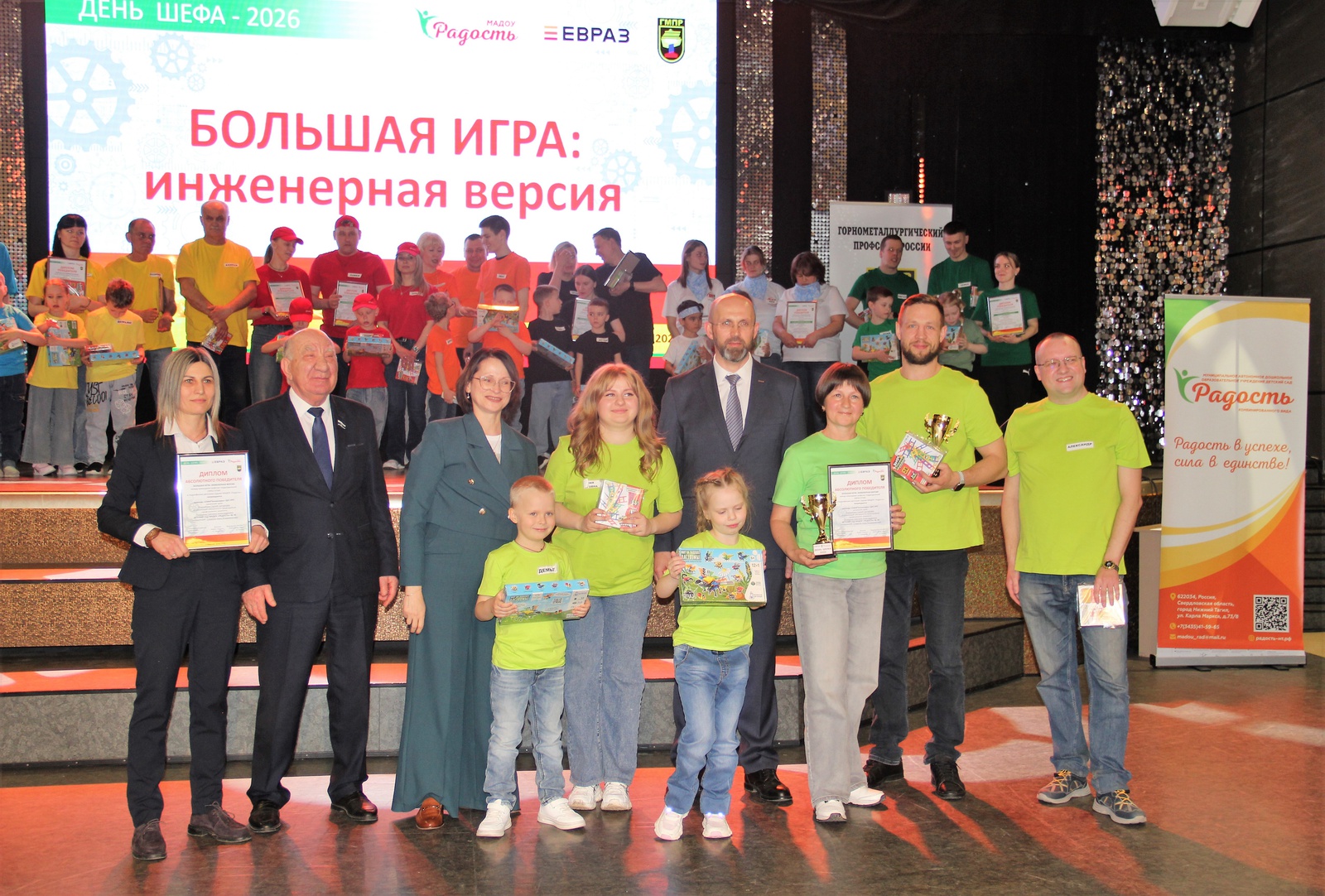 Торжественное открытие Большой игры состоялось при участии почетных гостей: В.Г.Радаев, председатель первичной профсоюзной организации ЕВРАЗ НТМК, депутат Законодательного собрания Свердловской области; Миронов Константин Владимирович, операционный директор ЕВРАЗ НТМК, депутат Городской Думы; Ефименко Юлия Валерьевна, заместитель директора по персоналу и социальным вопросам дивизиона Урал, руководитель Управления обучения и развития персонала, депутат Городской Думы; Басова Татьяна Викторовна, главный специалист по организации и развитию дошкольного образования, руководитель сектора Управления образования Администрации города Нижний Тагил.
